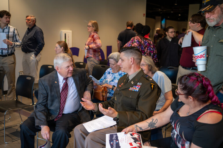 The LSUS alumnus returned to campus Monday to share his story with hundreds at the Collaboratory, emphasizing a “call to service” on this Veterans Day.