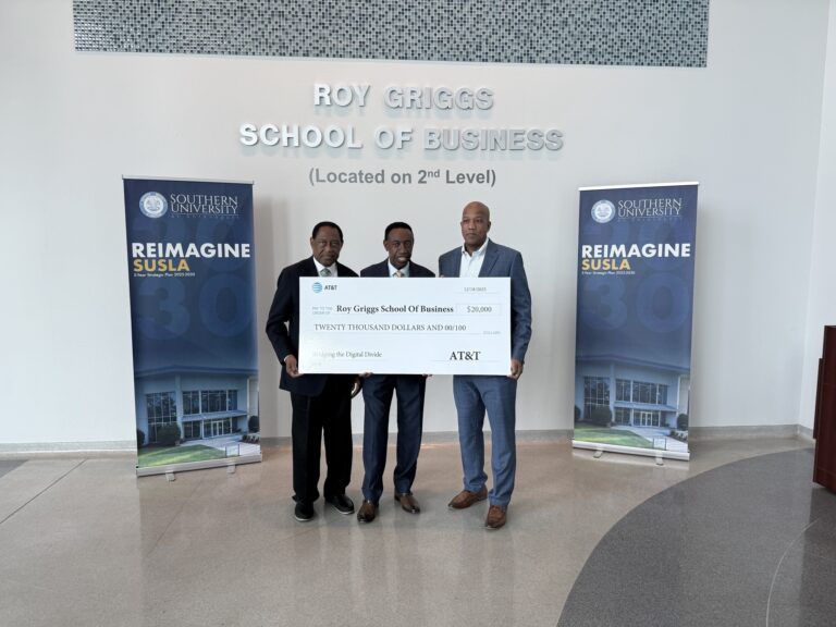 SHREVEPORT, La. — AT&T has contributed $20,000 to the Roy Griggs School of Business at Southern University at Shreveport to support scholarships for low-income, working adult students pursuing business degrees.