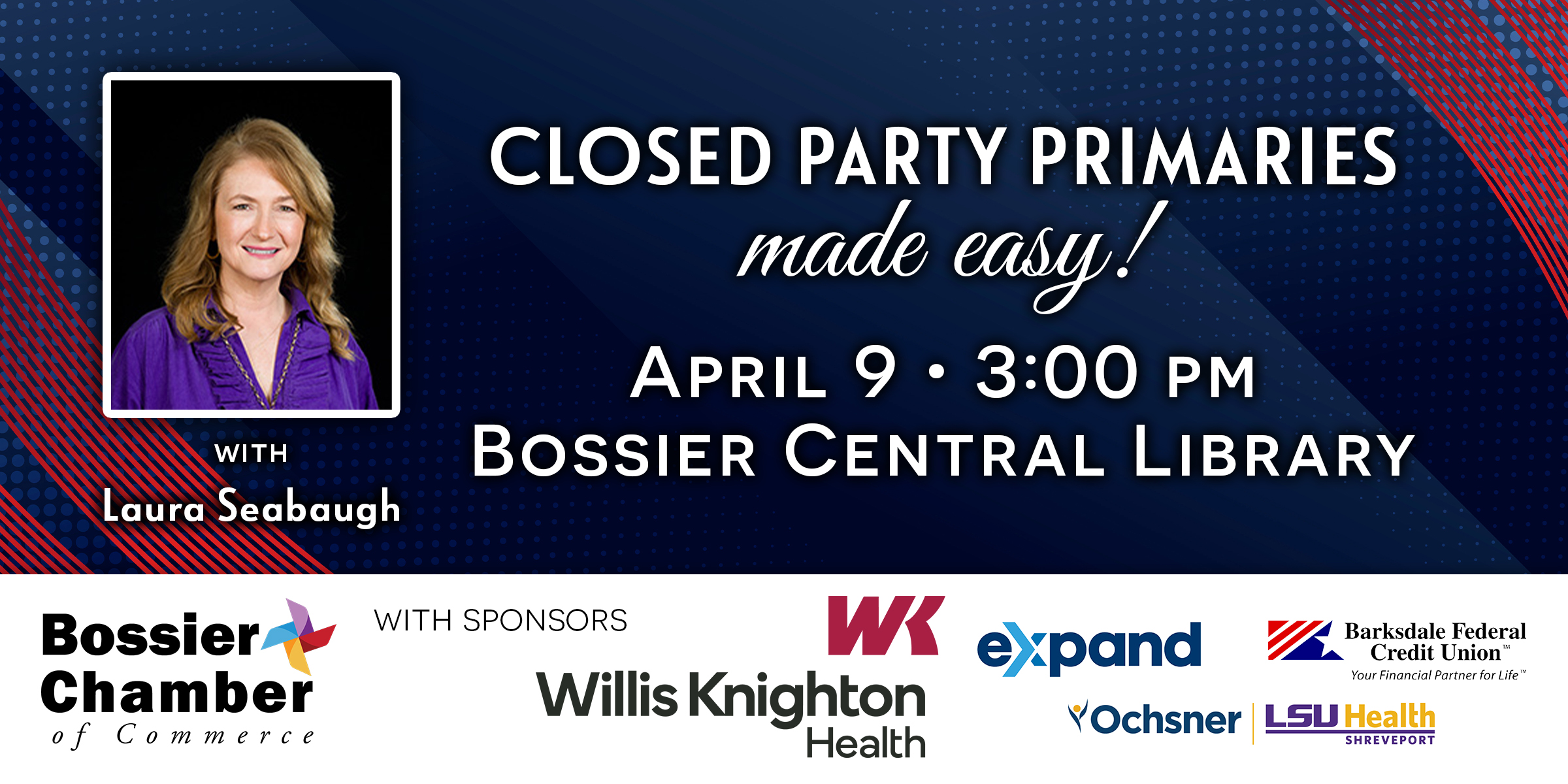 BOSSIER CITY, La. — The Bossier Chamber of Commerce will host an informational event April 9 to educate the public on Louisiana’s newly implemented closed-party primary election system, which will affect voting procedures beginning with the May 16 election.