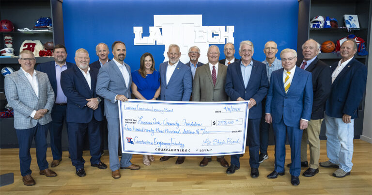 RUSTON, La. — The Louisiana State Licensing Board for Contractors has donated $293,000 to Louisiana Tech University’s construction engineering technology program, supporting equipment upgrades, student travel and continued program improvements.