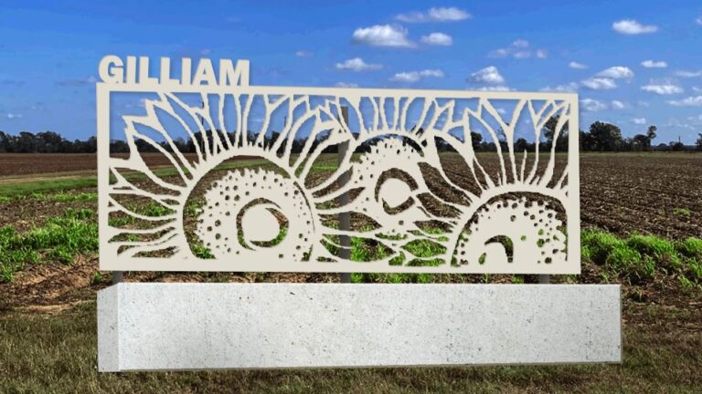 The Shreveport Regional Arts Council (SRAC), Visit Shreveport-Bossier, and the Caddo Parish Commission will unveil the first in a series of 10 artist-designed gateway signs along Northwest Louisiana’s 163-mile Boom or Bust Byway on Saturday, June 14, 2025. The unveiling will take place at 10 a.m. during the Sunflower Trail & Festival in Gilliam.