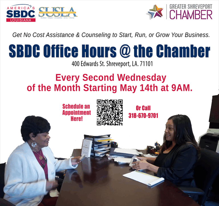 SHREVEPORT, La. – Starting Wednesday, May 14, the Louisiana Small Business Development Center (SBDC) will begin offering monthly office hours at the Greater Shreveport Chamber of Commerce, bringing no-cost, expert business consulting directly to downtown Shreveport.
