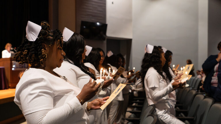 Wissing performed the blessing of the hands ceremony while nursing faculty Debbie Holloway led the Florence Nightingale pledge.