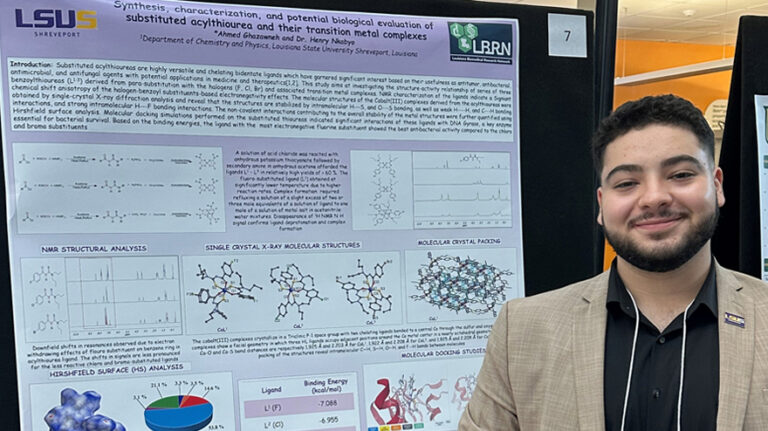 “I loved the experience and that I can feel comfortable stepping outside of my main subject to do chemistry research,” Ghazawneh said. “This was above and beyond what I thought I could do, and it’s opening up new possibilities and new resources here at LSUS and at LSU.”