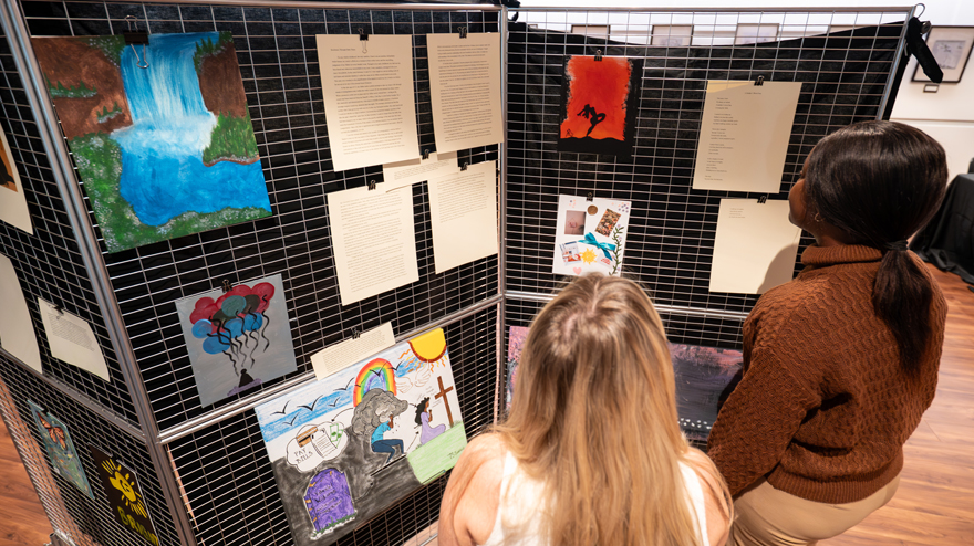 Nearly 40 submissions were on display at the exhibit’s opening Wednesday on the third floor of the Noel Memorial Library. The exhibit will be featured on the first floor of the library for the next month.
