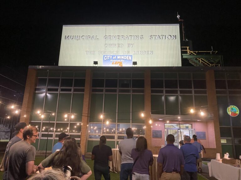 A crowd gathered just before midnight Saturday at the Minden Historic Steam Plant to witness a power switch ceremony marking the City of Minden’s transition to a new electric power provider. The event, held at 119 Horton Street, commemorated the start of a new full requirements power contract with the Louisiana Energy and Power Authority (LEPA), which officially took effect Sunday, June 1.