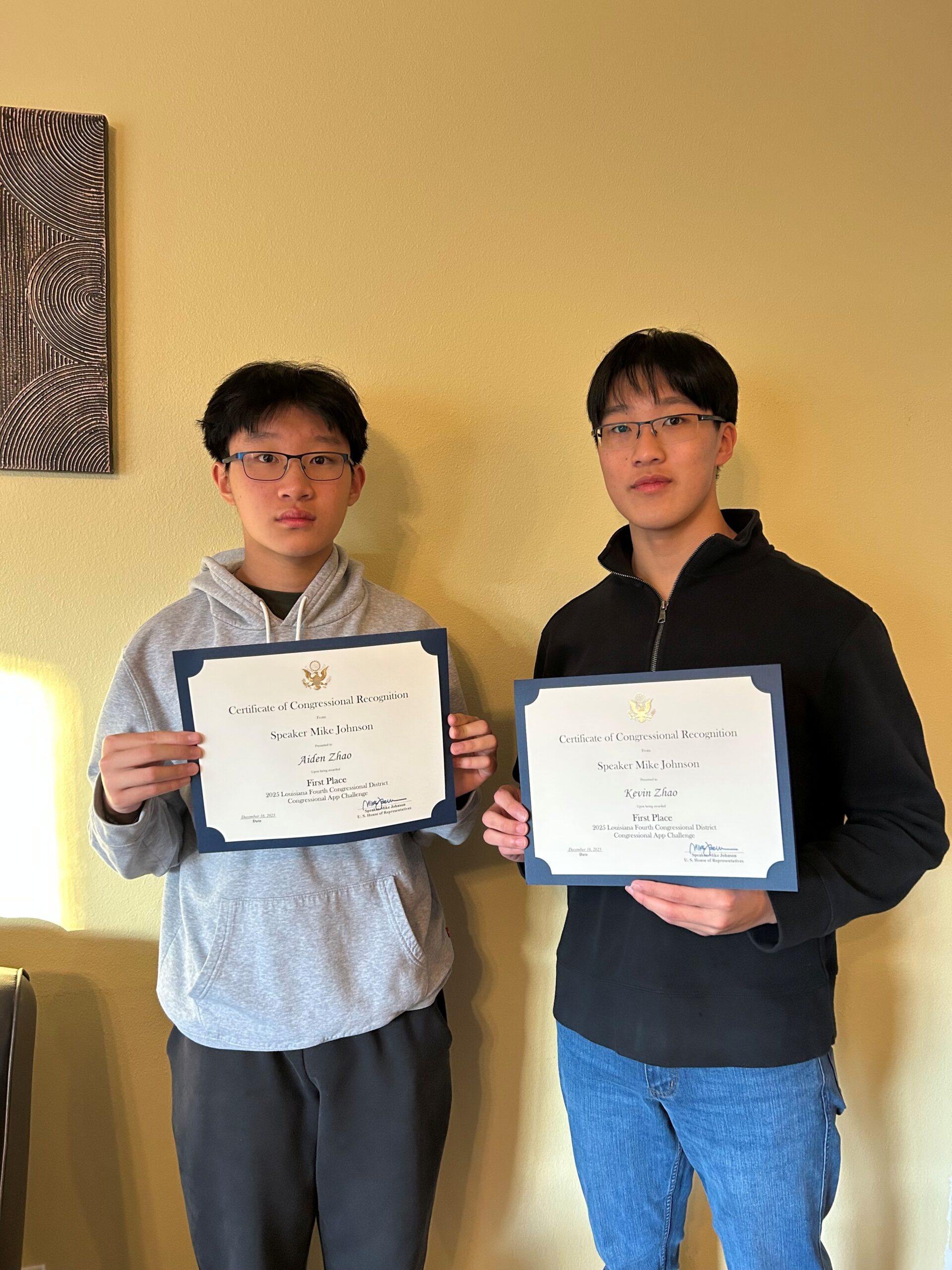SHREVEPORT, La. — Kevin Zhao, a student at Caddo Parish Magnet High School and participant in the Bobbie Cates Hicks Science and Medicine Academic Research Training (SMART) program, and his brother Aiden Zhao have been named winners of the 2025 Congressional App Challenge for Louisiana’s Fourth Congressional District.